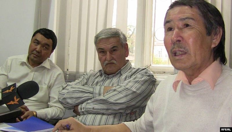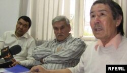 Солдан оңға: Ғабит Нұрәділ, Бекпулат Ташпулатов және Мырзан Кенжебай. Азаттықтың Алматыдағы бюросында. 5 қараша 2009 ж.