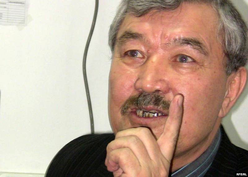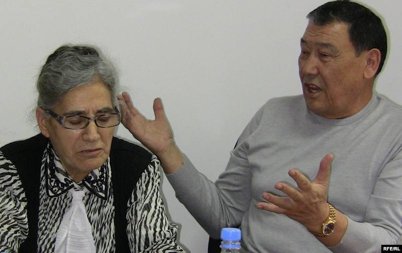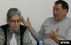 Ғалым Асылы Осман (сол жақта) және саясаткер Балташ Тұрсымбаев Азаттықтың Алматыдағы бюросында. 5 қараша 2009 ж.